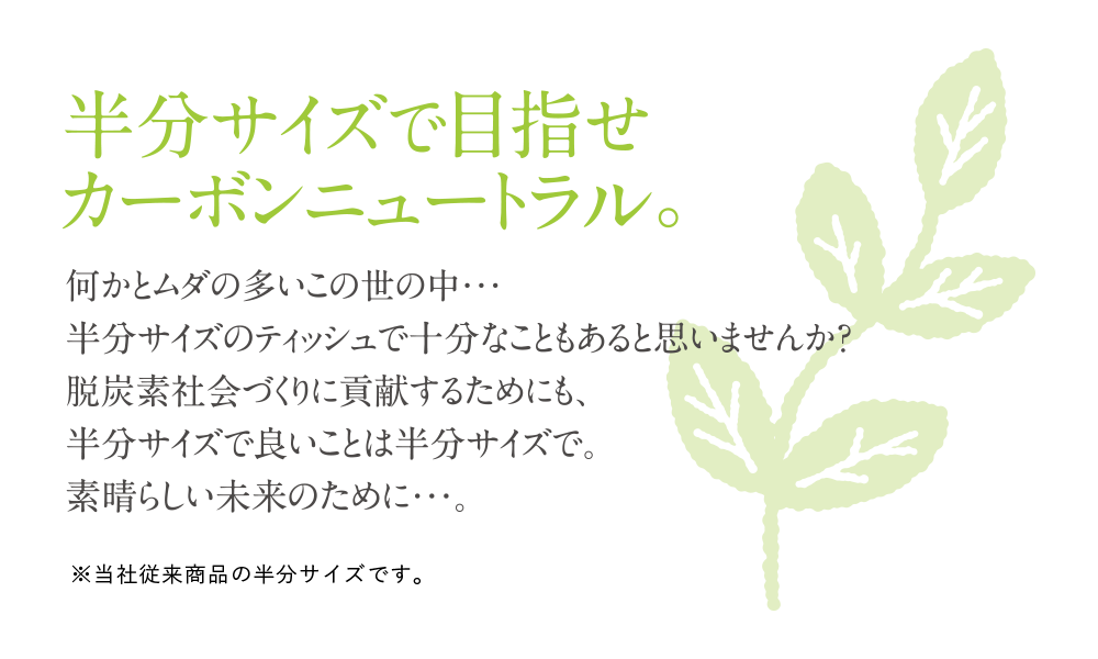 2. ティッシュを半分サイズに変える事で、限りある資源を有効的に活用できます。